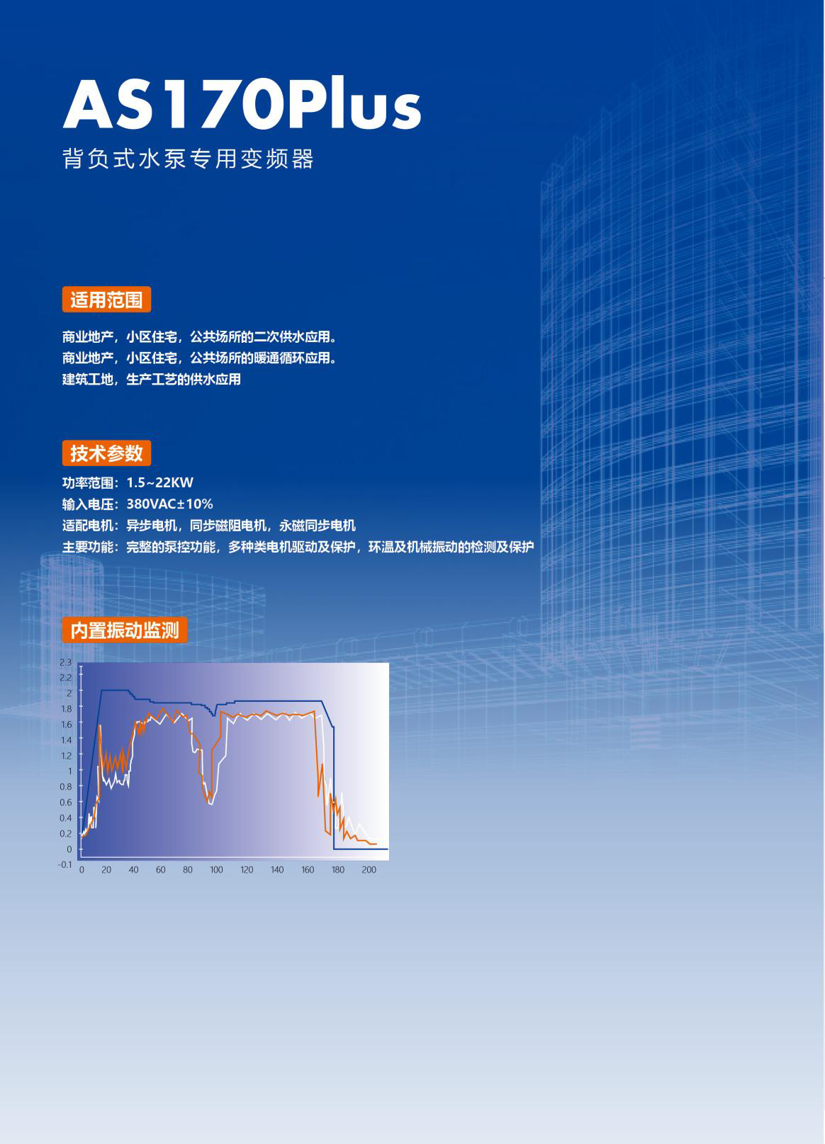 功率范圍:1.5~22KW; 輸入電壓:380VAC10%; 適配電機(jī):異步電機(jī),同步磁阻電機(jī),永磁同步電機(jī); 主要功能:完整的泵控功能,多種類電機(jī)驅(qū)動(dòng)及保護(hù),環(huán)溫及機(jī)械振動(dòng)的檢測(cè)及保護(hù)